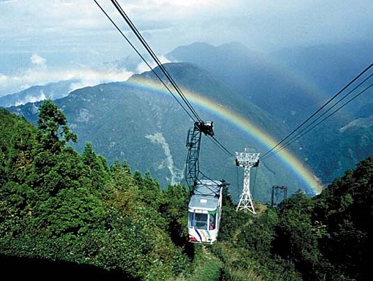 標高455mの山麓下谷駅から標高1300mの山頂成就駅まで、所要時間約8分の空の旅が楽しめる。